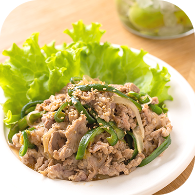 梅シロップ入りのタレで漬け込むことで、豚肉のくさみがやわらぎ、しっとりやわらかに。