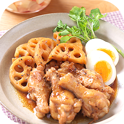鶏肉とれんこんを先に焼いてから煮ると、コクが出て味がよく染み込みます!
